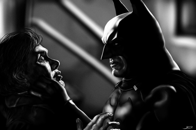 I believe in his own way Joker is trying to suduce Batman...... I think it's working. Batman doesn't drink except, in my own mind at that house were the comic is set. Because then he knows the consequences of drinking there won't get anyone hurt. So at that house is were this is set. Forgive the magic glowyness coming from the absinthe, I saw an ad for it that was like that and I loved the lighting so..... yeah enjoy