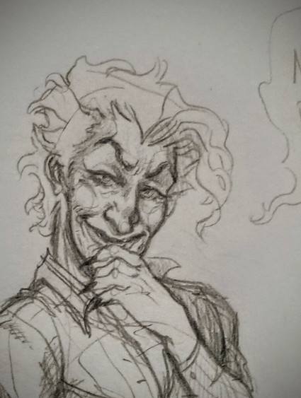 I'm not even thinking up whole stories anymore.... just snippets of exchanges. Wether head-cannon or exaggerated scenarios. This is head-cannon. There is so many exchanges between Batman and Joker that we don't hear about and my brain picks up sections of them like an old broken silent hill radio.I don't know what happens next... if anyone wants to have a go at cracking that puzzle either with words or drawings have at it.