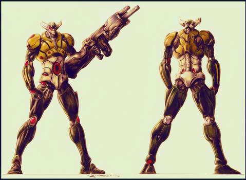 Well, are you familiar with a japanese film maker Keita Amemiya? I see bits and pieces of your work that remind me a lot of his. Like Samus' gun in the pic of her breaking out of her suit and your dark knight samurai pic gives off the initial impression of Amemiya's monster Zeiram. Anyhoo, Amemiya made a Kamen Rider movie using the Kamen Rider Black suit, however the monster in it looked a lot closer to this. I really dig this alternate take stuff. This is the kind of juice the henshin genre needs to revitalize itself. Great work!