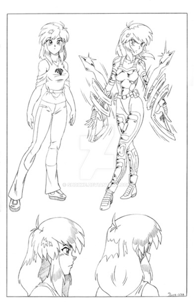Second: I really love the design for the char on the far right. Cute, deadly, and an android, and I was wondering if I could use her in a story I'm going to be writing. She'd be a "sibling" to my character (Most of my characters are going to be androids developed for combat, but one went insane and enslaved all but one and merged with the station they were situated in.).