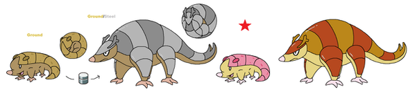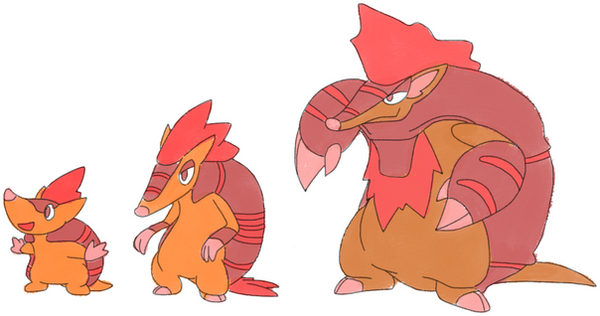 One, is to take some design elements from the larvitar line. By that I mean Tyranitar is essentially a larger, more ferocious larvitar, as is the case here. So perhaps make the middle evo like pupitar, like 80% of its body is its shell.(maybe change the overall color too?)