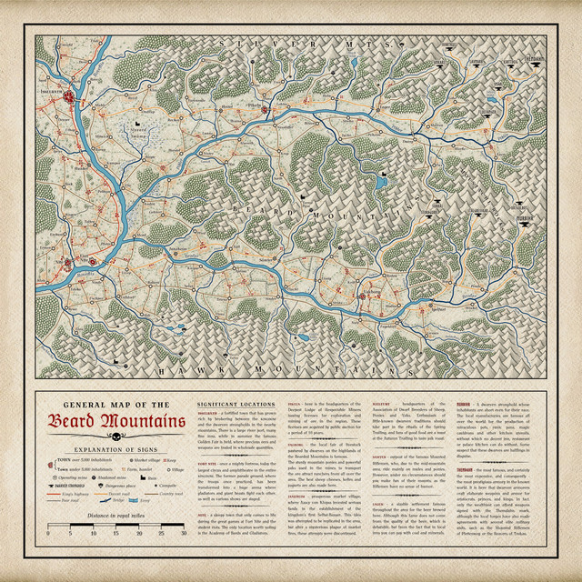 Don't use pure black. This I learned the hard way after doing the Midgard maps for +Wolfgang Baur and +Open Design. Black may read well on the screen, but it doesn't always print well. Here I've used a deep saturated brown.