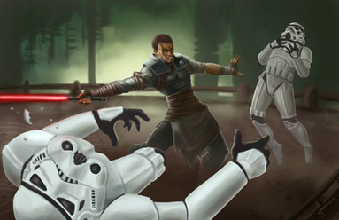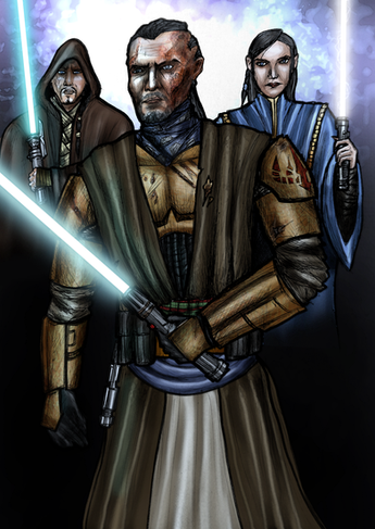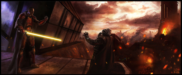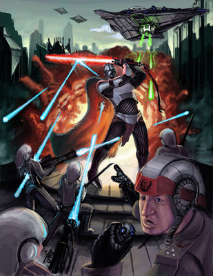 another force unleashed picture yaay, this one took a little longer than my usual pictures... im not sure how much.. but i spanned it across a couple days.its the apprentice on Raxux Prime with his second outfit.. i forget what its called, but its one of my favorite looks for him. he's also pushing the Scrap Gaurdians. i didnt have a good refrence picture so their not perfect. also im still working on my backgrounds so you gotta bear with me lol.