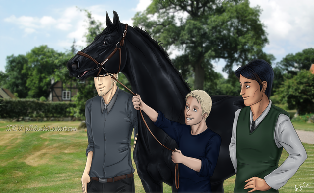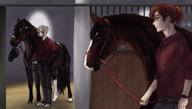I headed out of the house in the direction of the stables, where some horses were lying down, and others stood with their heads out of their stable´s window. At the end of the aisle I could see Ares stick his head out, I sighed, and walked over to him with the halter in hand.