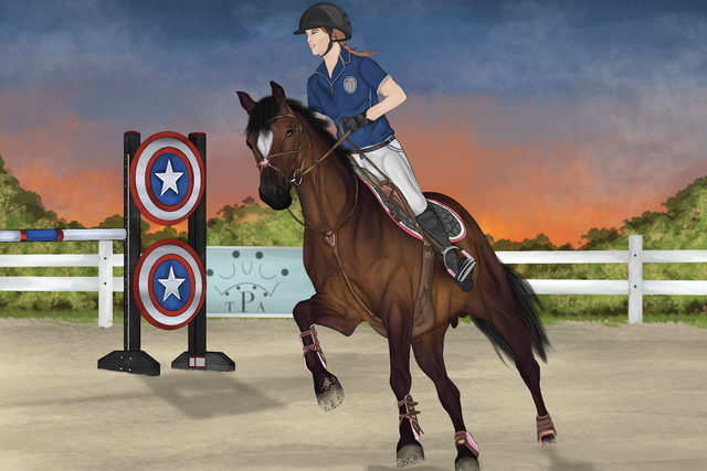 I sighed, and clasped my hands together, shortening my reins, and squeezing Ares' sides to get him to trot. He did so with difficulty and disdain, and soon after, Cole stopped me.