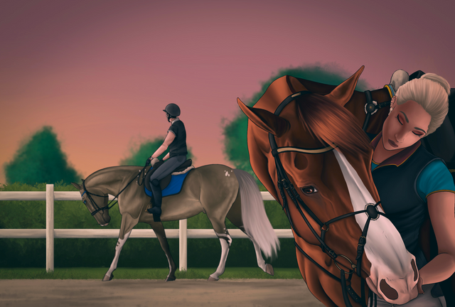 Ares walked calmly, his head down and his body relaxed, I let him walk for a while as I got used to being back on top of a horse. At times, I was still dizzy, but it was nothing I couldn't control by taking a minute.