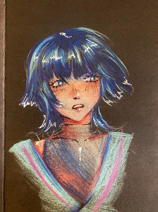 raiden shogun sketchbook spread/gouache and oil pastel/