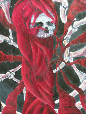 Oil on Cardboard.This piece was never finished but for some reason it is one a a very select few that actually gets displayed and has yet to be sent to the pile in the corner. I dont know why. this was going to be a uhhh... self portrait. Yeah I know... Watever. lol Anway, enjoy.