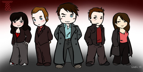 Booth, Brennan, Zackeronni, Hodge-podge and Ange from the awesome tv show BonesThis was so much fun to draw :3 Started off just as a fun sketch (which is why some of the faces don't look right) then I got a bit carried away.