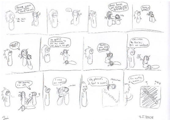 The top bit is just random scribbles, the most part is the tale of Supah Poneh!