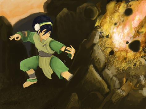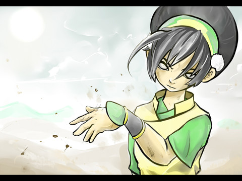 Toph teaches herself to sand bend(I've re-loaded this image 3 times now... been fiddling with the bg)