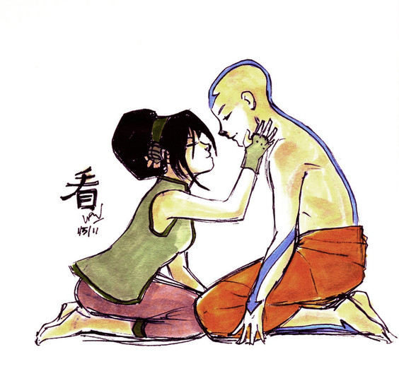 Aang looks nice and buff....Toph is a lucky girl
