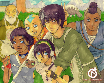 Anyways, brilliant piece of work here. As per usual your colouring is simply excellent, and you've done the top down perspective really well. Also, very well done on the more realistic faces, particulary Aang's, and I like the restful poses as well.