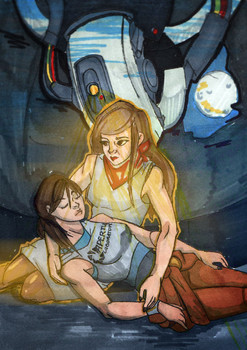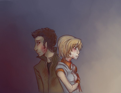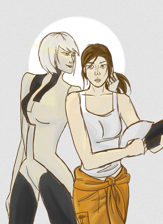 I'd so love a crossover to happen somewhere. It's the same world, why not?This picture isn't at all finished, by the way, I'm just sick of it sitting on my desktop. All the colours for the two girls are on the one layer, which I'm pretty proud about. That's also why it looks so messy.