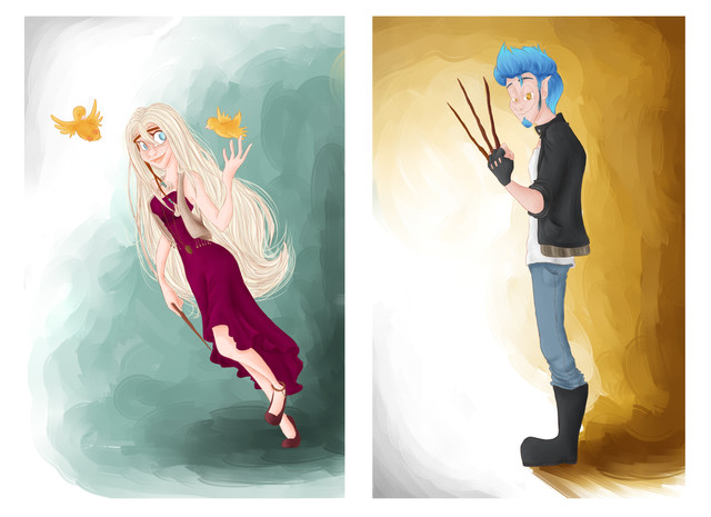 An old drawing of mine and 's characters Myrna (left) and Caden Thorn (right) for our story about griffin ridersaka my fav otp right now (even though they dont seem like it her trust me they're adorable)