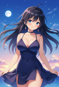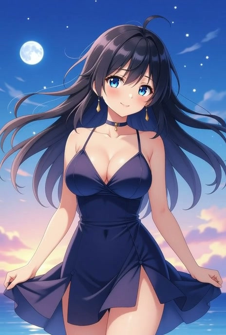 QueenMoon229 - girl wearing a Black sundress, tight, simple anime [🤖]