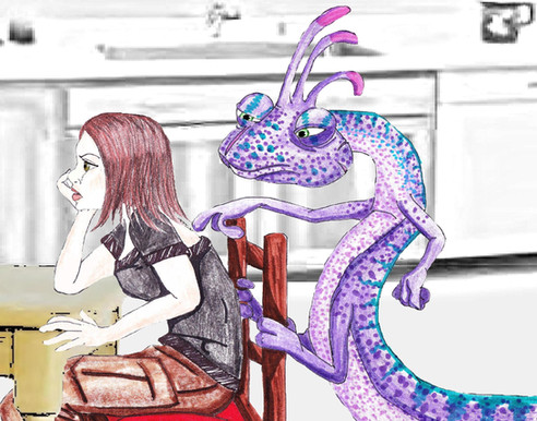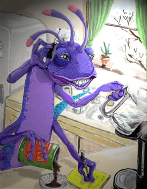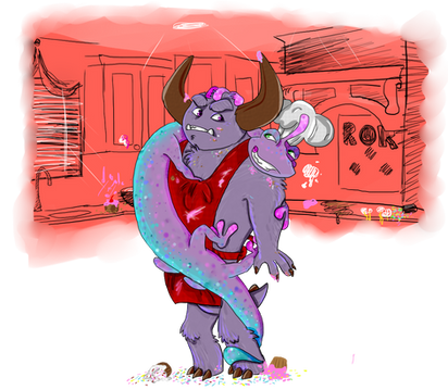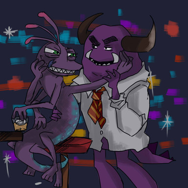 Tumblr request, Randy and Sulley on a date, when Randall gets nervous and knocks stuff over (in this case the waiter)OMG I suck at furniture..... its abstract, yeah.