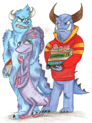 so boo went as half human and half vampire and so then boo went to first grade and met the teachers and so then it is recess and so boo sat by herself and watch other monsters play and then she spotted the monster that blue with purple spots and doesn't know his name and want to meet him to be his friend and so then sully saw her and went closer and mike stopped him and made in front of him and so sully fight with mike and so boo told the principal and so then sully&mike went back to class because then bell already ringed and boo played by herself some more and so then sully fianlly saw her and said'' hi'' and boo said''hi'' and so sully said''what is your name?'' and boo smiled and said''im mary dark but you can call me boo'' and sully shook her hand and said''james p sullivan but you can call me sully'' and so then we come friends for real and so then we took pictures of the classmates and so then boo notice her other self want some blood like now and so boo eyes turn red and fangs come out and so boo saw sully and said''sorry forgive me'' and so boo bite him on the neck and sully was shocked and he will get use to it for now on and so then we tickle fight,tag,hide&seek too and we become best of friendsΒ