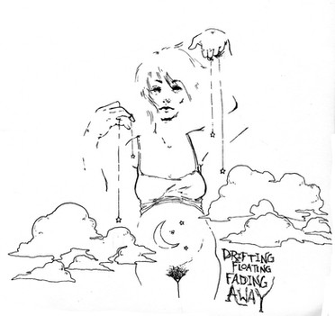 looked at myself in the mirror and did a contour drawing of my face and then decided to add the fish, then added the floating hands, did the line art then I painted it with watercolor and glued on the button candy...