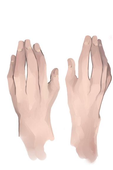 After my + It's Your Choice + piece ([link] ), I realized I needed some practice with haaaands!I took several snapshots of my hands in various poses to do renders of them for practice. Like what I did with those animal pictures, except this time with hands, and colour.