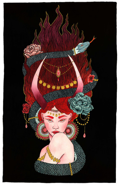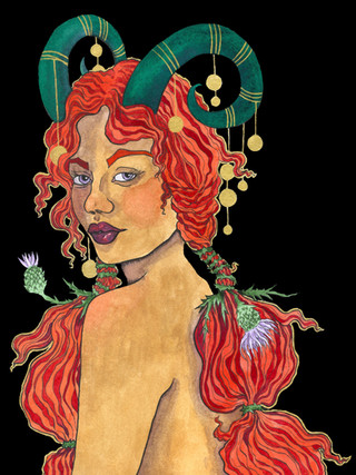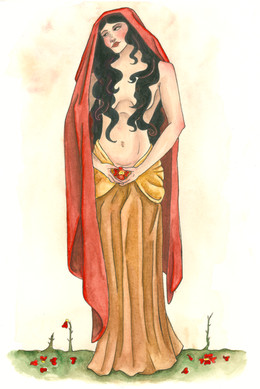 Something a little different for me. My interpretation of Demeter. I don't use a lot of "warmer' tones in my work, so this was a challenge.Watercolor and ink on paper.