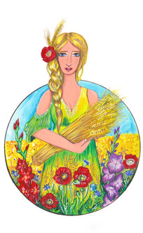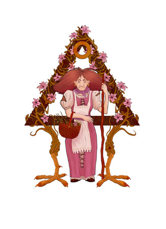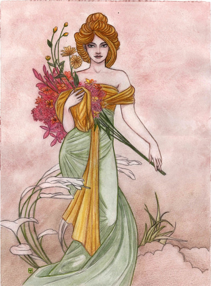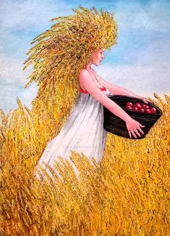 #autumn #basket #bushel #coloredpencil #corn #cream #dress #fall #fruit #girl #harvest #illustration #ink #nature #personification #pink #purple #red #stalks #watercolor #woman