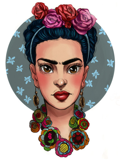 #bust #famous #flower #flowercrown #flowers #headdress #hostory #illustration #kahlo #mexican #painting #pink #portrait #red #spanish #unibrow #watercolor #artsits #frida #fridakahlo