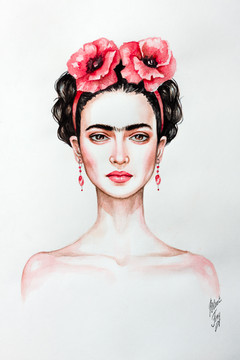 Watercolor and ink on hotpress paper.ÂFrida KahloÂ