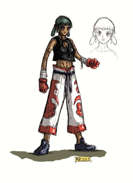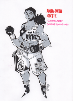 Akshara Rama, the primary antagonist of the story who stands in Anna-Lucia's way of being unified champion. Growing up in the Dharavi slum of Mumbai, India she has two out of the 4 existing welterweight belts at the outset of the story and right before the end she’s acquired a third. She’s the no. 1 ranked women’s welterweight fighter in the world and is in the top 10 Pound-for-Pound rankings (the definitive list of the best active fighters in the world with their weight classes all taken into consideration).