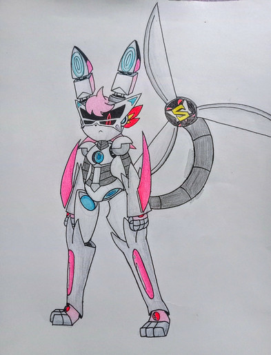 Name: Metal Rabbidbot "Toyco" White-RabbitSpecies: Robot Toy-Python Tailed New Zealand White-Rabbit Hybrid Human PawPant