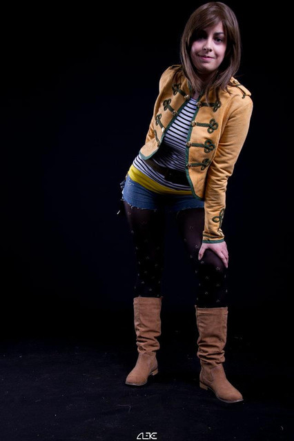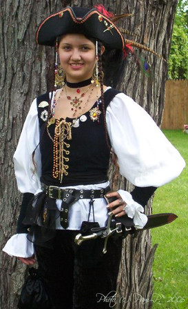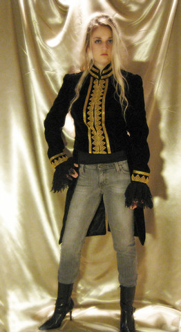 Oooooh it looks great. And actually the jacket looks really good with those shoes of hers I like the beaded edging around the top of the dress, but I LOVE LOVE LOVE the jacket. It's like, kind of military, kind of pirate-esque. Very nice. Good job