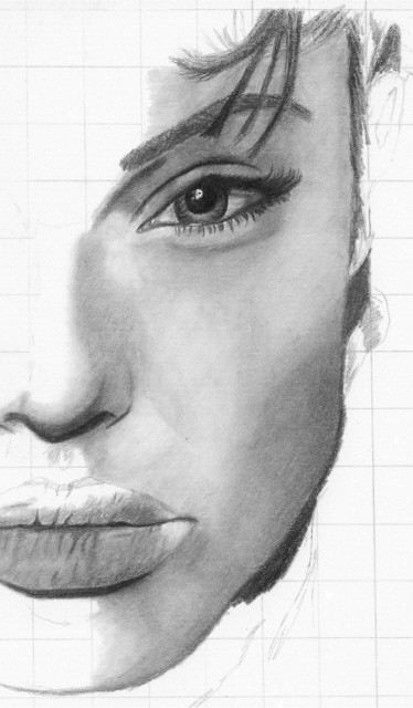 Okay, I whipped this out super fast. I don't like it. Her shirt... I mean halter top looks like poo. I haven't drawn anything this shadow orientated in a long long time. And for once, the scan/photo actually makes it look better!14x17, mechanical pencils.