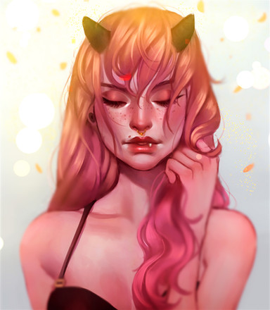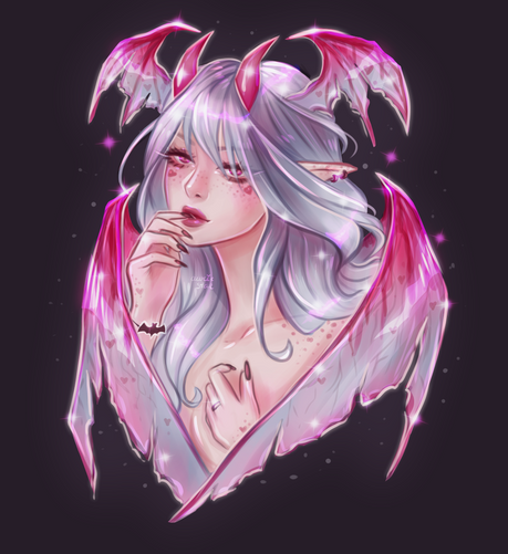 #artchallenge #demongirl #pinkhair #portrait #prettygirl #semirealistic #drawthisinyourstyle