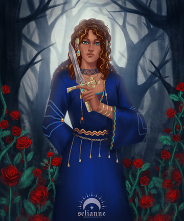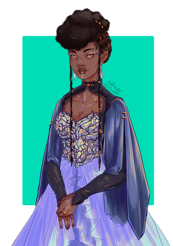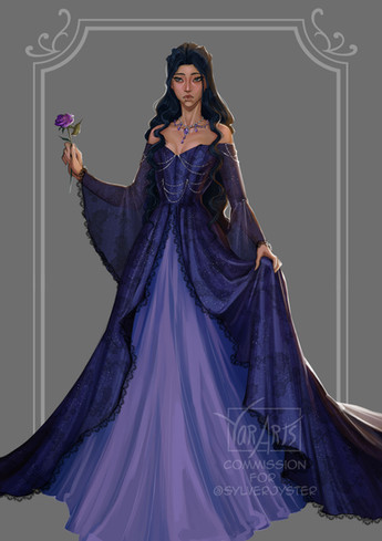 #bluehair #commissions #originalcharacter #purple #purpledress #redrose #rose #sunset #nordicdress