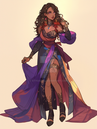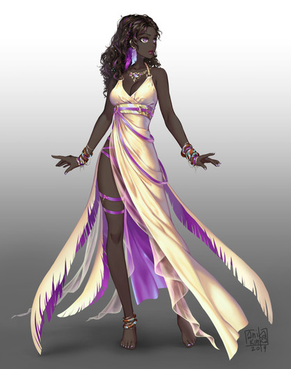 #anime #beauty #bluedress #cards #commissions #darkskin #flowers #gold #halfbody #jewels #pinkflowers #semirealism #semirealistic #vampire #beautifulgirl #jewelrly