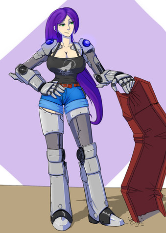 Commission forWhen the big androids need work, Sylvia's the one fixing them. That's the case for Skylar's arm on the table, with Phendrana's arm holding the tools.