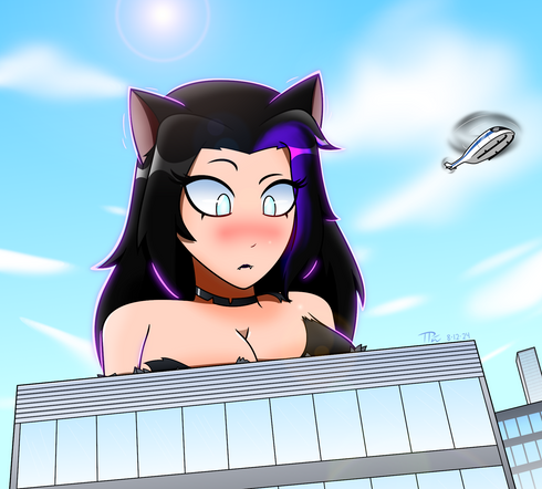 Maxine's learning the hard way not to tempt a kitty with shiny objects. And it's a black cat. And it's Hex. A nine-foot kitten.
