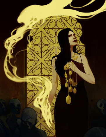 The painting is wonderful and well done. Lights, colors, setting. Her face is really creepy