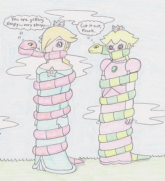 Mario walks in after defeating Bowser, "Hey! You're not the princess!"