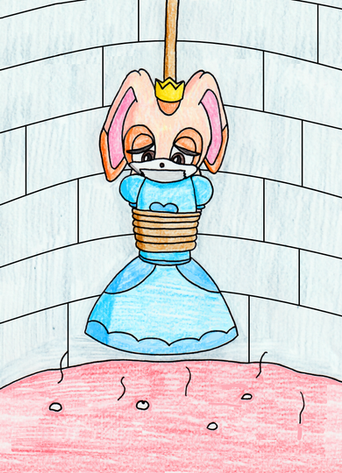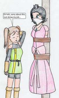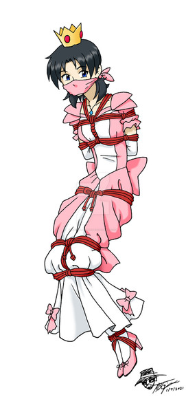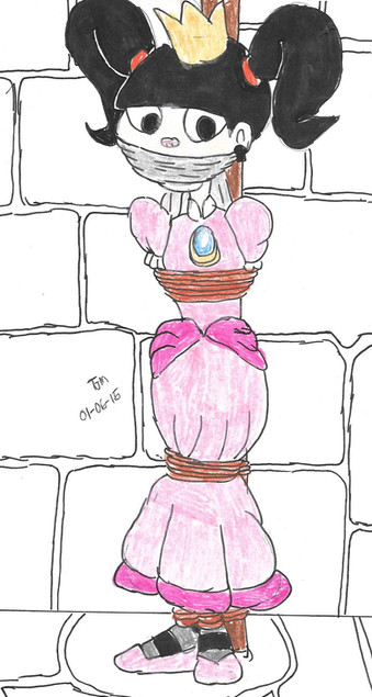 Another trade with , showing her all strung up in a dungeon. She suggested the theme of her being an overthrown princess, so I went with this theme and did some suspension bondage to make it more appealing. Pretty happy with how the hanging tie and shading turned out for this.Related content