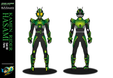 Equipped with the Desire Driver and the Butterfly ID Core, Katrina transforms into Kamen Rider Barfly. She moves gracefully when transformed, but is by no means an experienced fighter. Her ID Core slows her falls by defying gravity slightly.