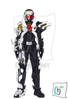 Mosaic uses the Anaguma (Badger) and Wireless Full Bottles to achieve his maroon and off-white Best Match Form. This form is known as the Frequency of Fury, and is a highly aggressive form with unique powers. The Anaguma Full Bottle arms Mosaic with a massive claw on his left arm, dealing brutal slashing blows with terrible force. The Wireless Full Bottle allows Mosaic to intercept transmissions, as well as broadcasting his own through any speaker within range. His voice is highly persuasive when powered by this form and, with enough energy, can be perceived as a mandate.