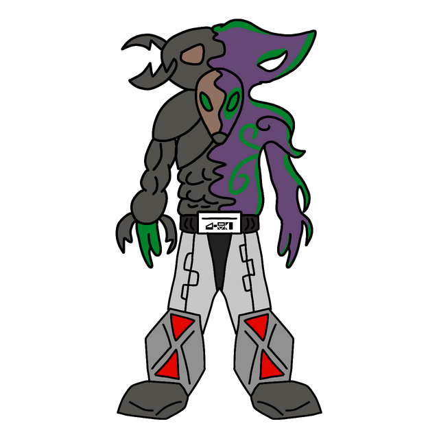 The Beetle Malgam is created by forcing an innocent bystander to transmute with the Kabooster Chemy. This monster is very physically powerful, a capable wrestler and boxer leading with his oversized arm. His favored move is to grapple his target and toss them across the field. This monster is eventually defeated by DrawGo BurgAlarm.
