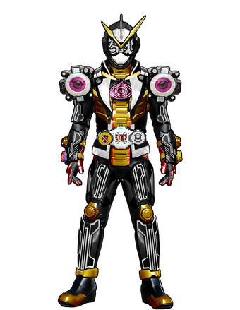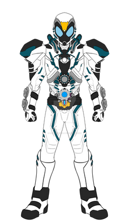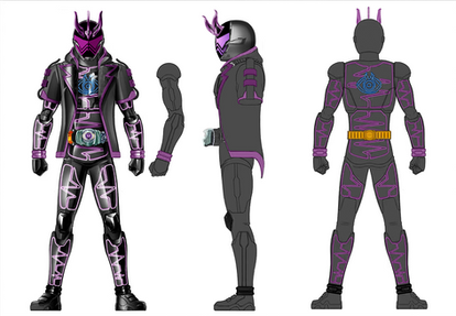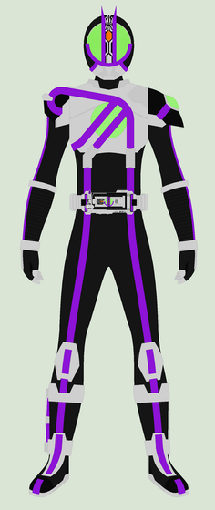 Using the Risen Eyecon, he assumes his basic purple form, which packs incredible power and durability. When transformed, Risen is naturally invisible to humans. His suit is charged up by defeating Ganma; the purple accents glow more brightly and flare with spectral fire the more Ganma he destroys. Certain levels of absorbed power allow him access to other ghostly powers, such as levitation and intangibility, and any charge he has automatically bolsters any Finishers he may use.