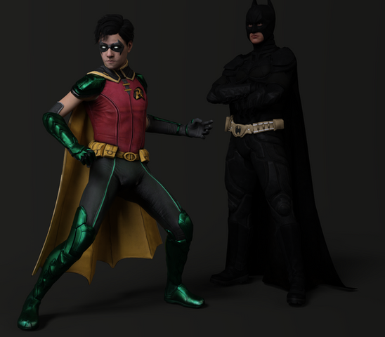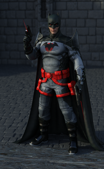 This one I used the Gotham Ghost suit that I retextured with darker colors and added a few extras Like the chest armor and the forearm spikes from another Batsuit from Injustice2 and Robin suit from one of the Arkham games I converted the robin suit in Blender to fit G8M and I downloaded The Gotham Ghost suit from magnus1781The Batcave Is from the first Injustice game