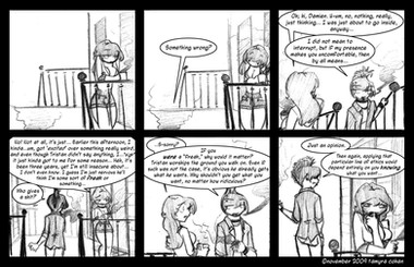 I love how you can keep the proportions of so many different facial types consistent from frame to frame! It's like watching a movie - my brain's like "Ah, these are real people -- pictures of things with fixed bones -- because if it was a drawing, it'd be...mushy." And it isn't. I'm always shocked by your human drawings (I usually am seeing the cats) because they're so incredibly lifelike.