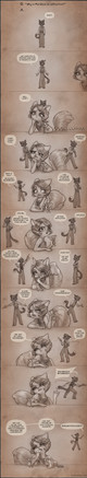 This is such a wonderful and informative breakdown. Β Thank you for this! Β I tried this technique because I just love the results in your comic. Β Your black and white is just gorgeous! But I see what you mean about how long it takes. Β I didn't even come close to the detail you do and it still took a very long time. Β I don't think I mastered that lovely sepia tone you always achieve.