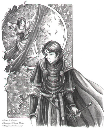 I love Xaphan. BWAH! As I said in a few of your Elfwood pictures featuring him. He's kind of scary in a sideburnsey way, don't cha think? I like Regin's expression, he's like "Just go home -_-." I love the way you draw hair, and armour, and wood, and trees, and the folds in clothing, and faces, and how you can make each character individual, and how you draw muscles, and horses, and animals, and your designs as a whole. Basically...I adore your art.