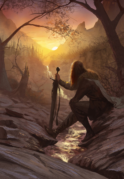You probably could do a better job composition wise by expanding the width, giving it a "widescreen" feel. It simply looks a tad cramped like this. Also you might want to consider showing more of the sky and sword; the sword itself seems like a near-hidden detail in that corner.