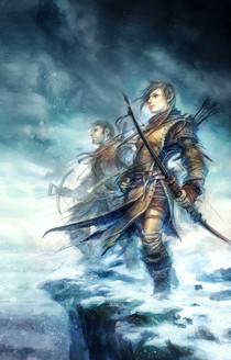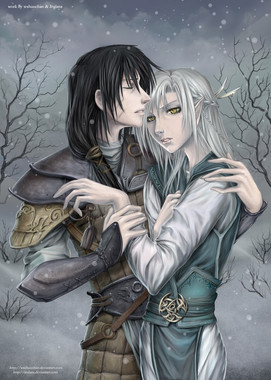 If there's anything I enjoy painting, it's snow...and melodrama. Which is probably how I managed to sidetrack myself once again from what I should have been painting. Characters Tess and Kessian (who has become left handed as a result of some poor compositional planning on my part, but since it's the first time I've done a color image of him, he can stay that way). The foreground was drawn out in pencil first, originally with a somewhat different background. In painting it with Photoshop, I swapped in a different background.Related content